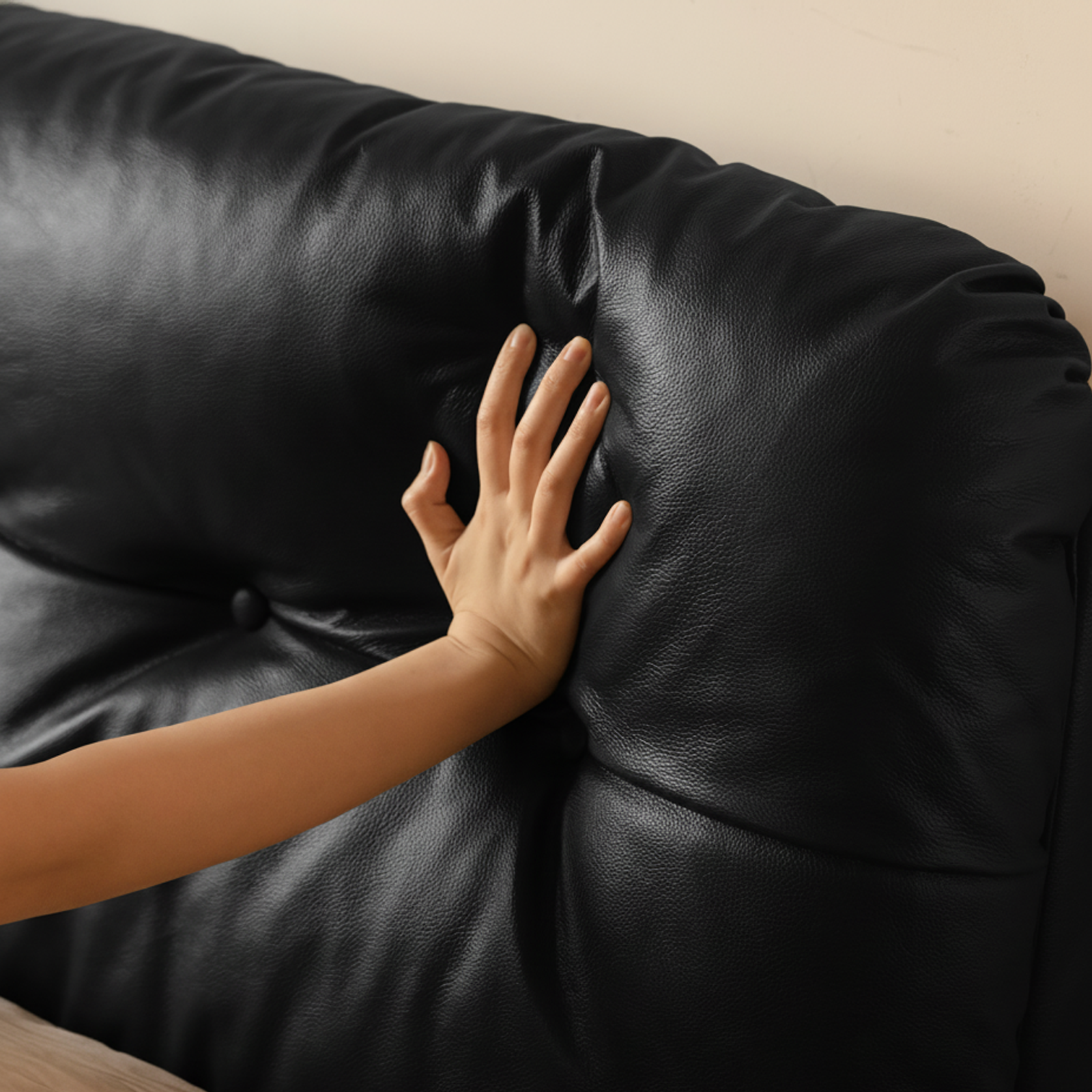 Discover the Astra Bed, the ultimate in luxurious comfort for your bedroom sanctuary. This stunning platform bed is defined by its exceptionally soft, goose down-filled headboard and is fully upholstered in genuine top-grain leather for a truly high-end sleep experience.