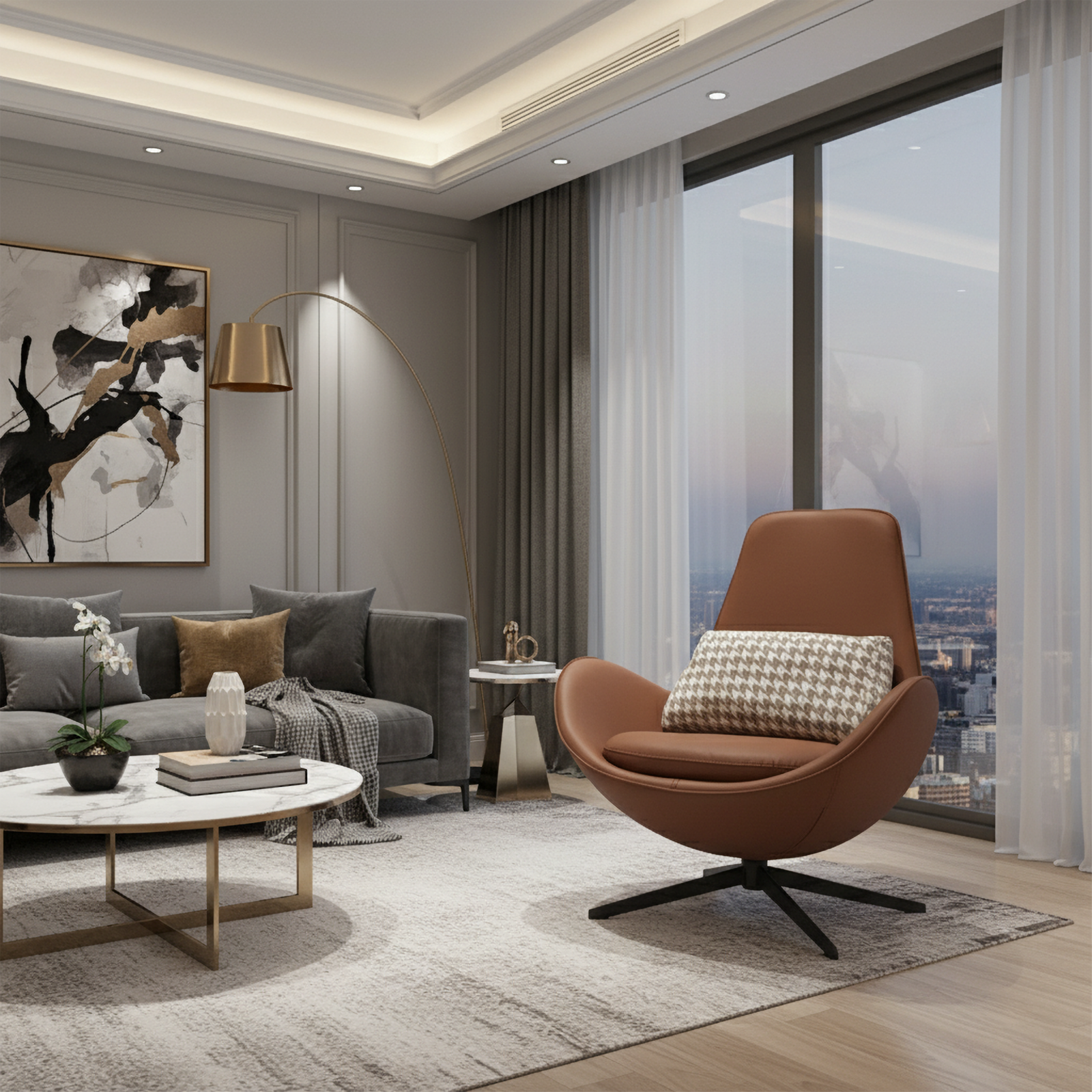 Discover the Enzo Lounge Chair, a stunning piece of modern sculpture that's as durable as it is beautiful. This chair is defined by its unique enveloping shape and is upholstered in a special, pet-friendly performance fabric, making it a stylish and worry-free centerpiece for any contemporary home.