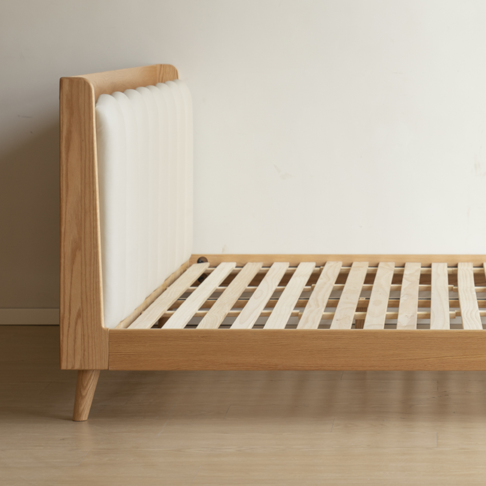 Create a serene and stylish retreat with the Petala Bed, a breathtaking centerpiece for the modern bedroom. This bed is defined by its unique, nature-inspired headboard and is crafted from premium, sustainable materials, including solid Red Oak and luxurious organic leather.