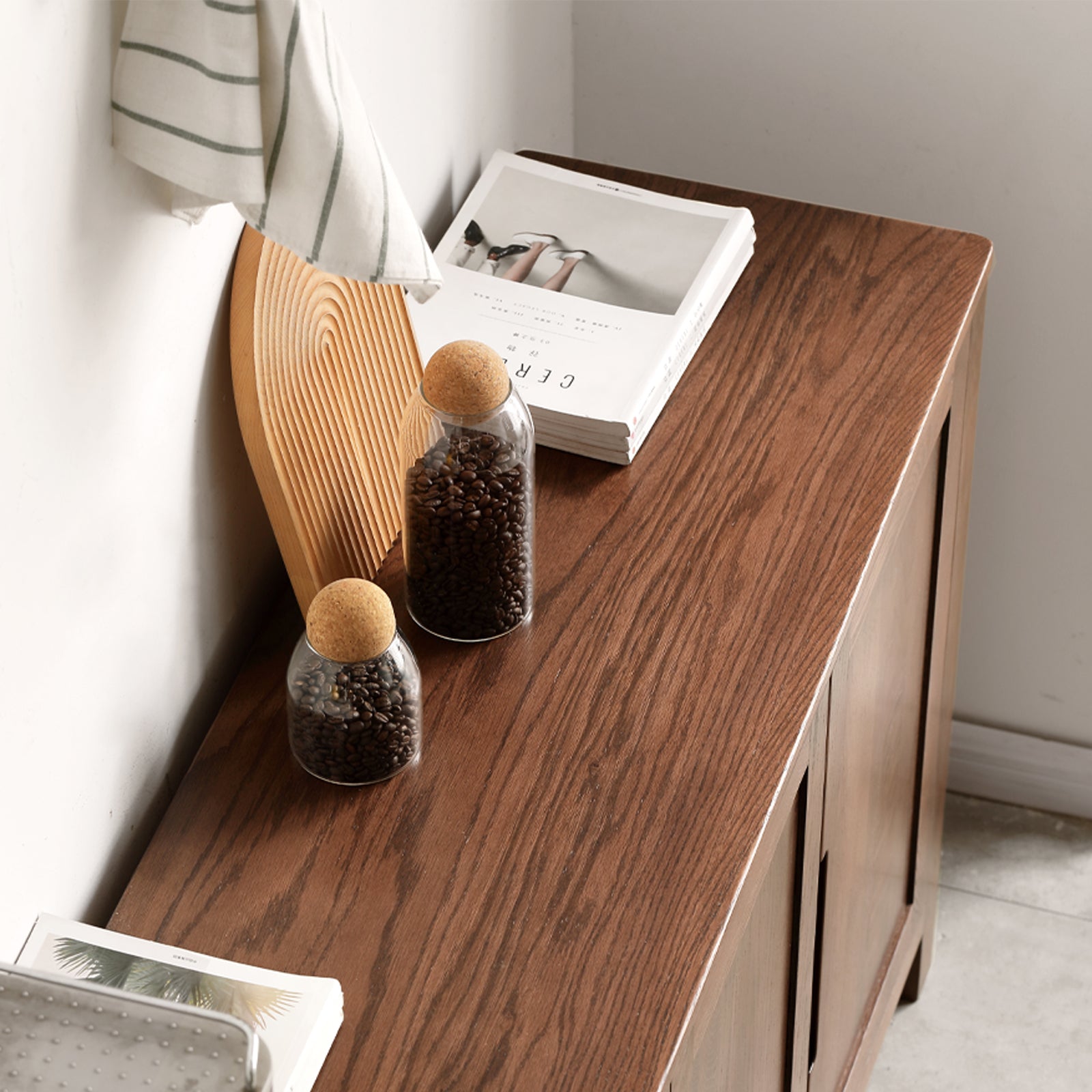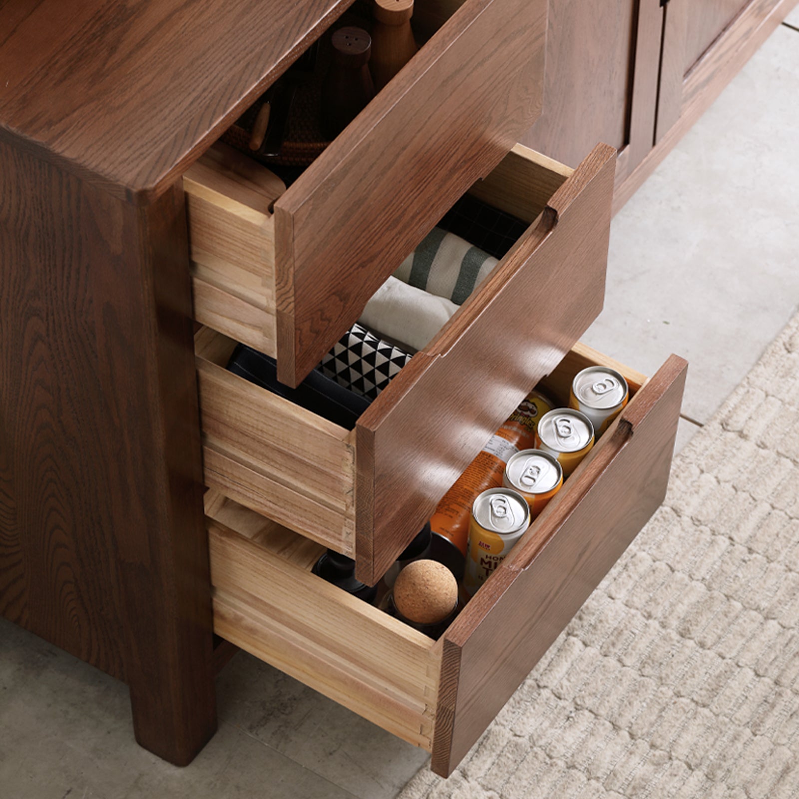 Discover the Stave Sideboard, a perfect blend of robust construction and classic design. This piece offers generous storage capacity and is built from solid Red Oak with a beautiful walnut-toned finish, making it a timeless and functional anchor for your dining or living space.